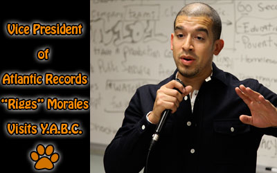 An evening with Riggs Morales is an inspirational journey from the slums of New York City poverty to riches and glory . Riggs was a Shady Records employee taking the position of an A&R , and is currently the V.P. of Atlantic records. His extensive background really meant that he had a lot to offer in terms of life experience. Riggs was assisted by Sean C another Industry professional. Sean C reinforced much of what Riggs said with his own words. Students were able to see how both of these two men took the cards life dealt and flipped them and made a hand for themselves. Virtuous and genuine,? both of these men broke down their struggles from Sean defeating cancer,? to Riggs dropping out of school yet later being dedicated to obtaining his diploma.
