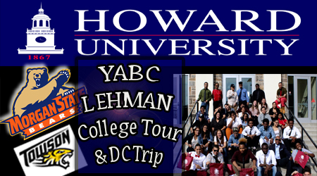 Students from YABC @ Lehman High School Went on an amazing college tour and visit to Washington DC. ?Student’s visited Howard University, Towson University and Morgan State University. After visiting these schools the student were able to visit the Washington Monument and see the White House.